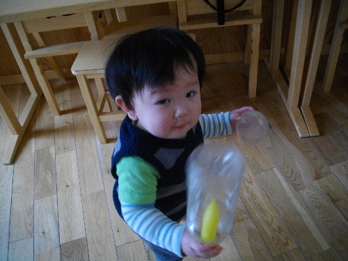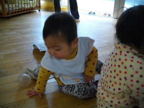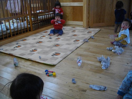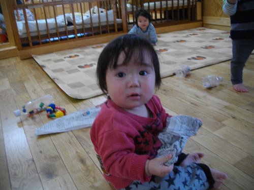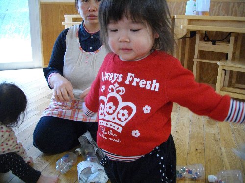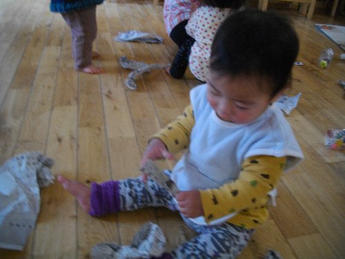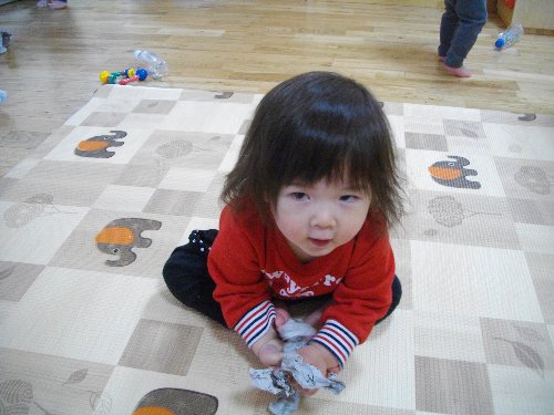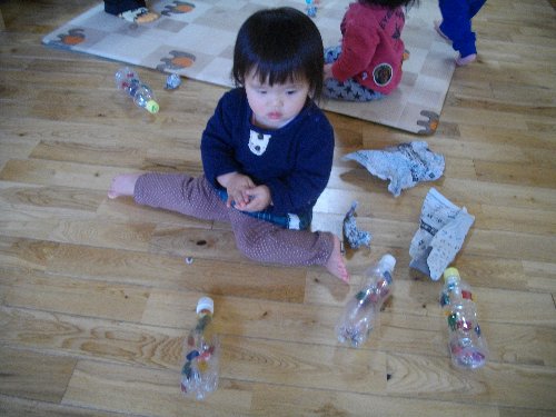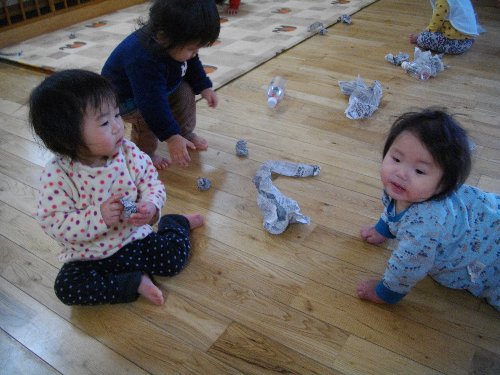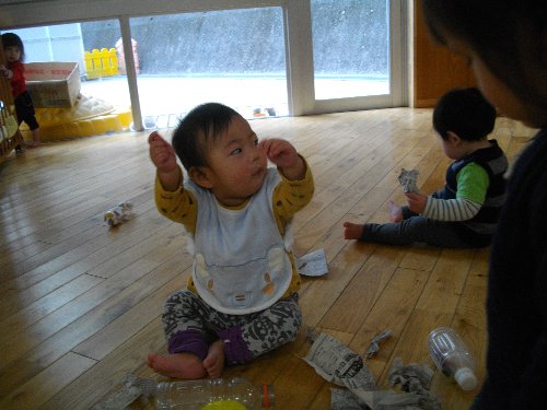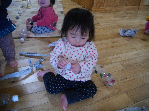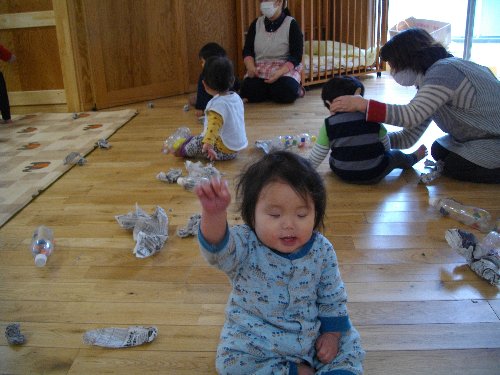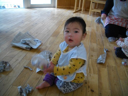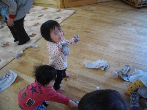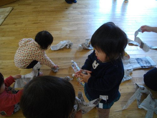1月28日 もも 新聞紙で豆作り