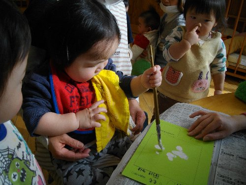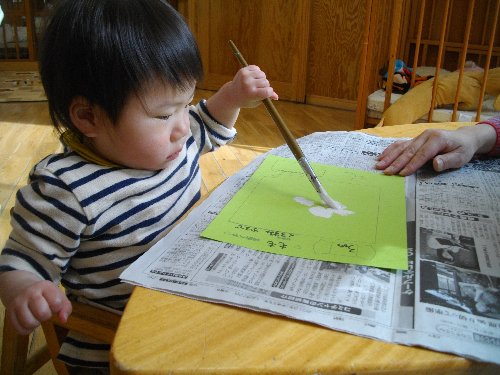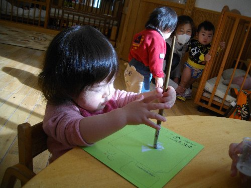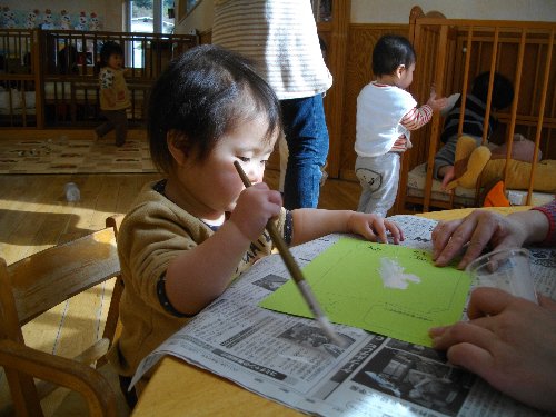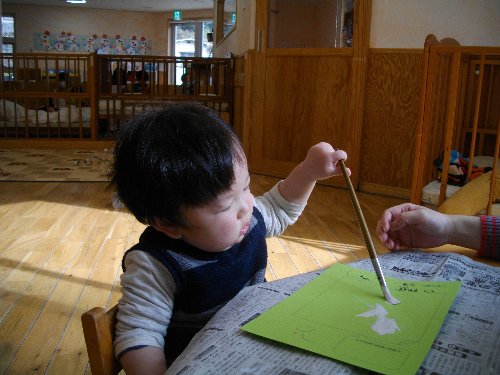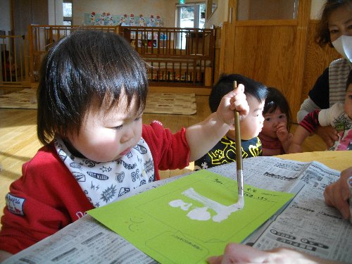 2月13日 もも 絵の具遊び